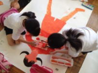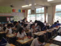 3年生の教室で栄養士の先生が給食指導を行いました。今日は食事の際に噛むことがいかに大事かということを話してくれました。噛むことが脳にも心にもそして身体にも影響があるのだそうです。ゆとりをもってゆっくり食べる習慣を家でも実践したいと思いました。5校時の美術では1年生が多目的フロアに大きな紙を広げて作品を仕上げていました。イライラ,ムカムカ,ハッピーといった感情を絵で表現しているようでした。2,3人のグループで相談しながら力作を仕上げていました。これらの作品も鰍朋祭で披露されると思います。お楽しみに。