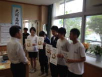 24日(土)に行われた県中学校バドミントン選手権大会で鰍中生が活躍しました。男子ダブルスで3年生ペアが優勝。男子シングルスで3年生が3位。女子ダブルスで,2・3年生のペアが3位になりました。その他の生徒も県大会でベストを尽くしました。今日は入賞した生徒たちが,校長室で結果の報告をしました。給食の時間には栄養士の先生に給食指導をしてもらいました。朝ご飯を食べることの大切さを知りました。家庭でも話題にしてください。