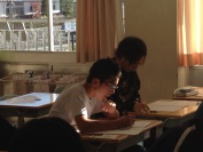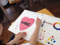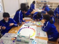 6校時,1年生の授業をのぞいてみました。美術の授業で色の性質について学習していました。3原色を基本として,それぞれの色がどのようにできているかを実際に色づけしながらグループごとに学び合っていました。このような基礎知識があってこそ,上手な絵が描けるのでしょうね。