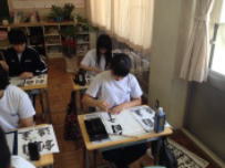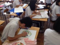 6月になりました。このところ連日,日中はかなり気温が上がっています。県内でも35℃を超える猛暑日となっています。もう既に真夏の陽気です。学校では熱中症には十分に注意をして活動をしています。3年生の美術の授業ではオリジナルのTシャツのデザインをしていました。レタリングや色使いなど,授業で学んだ知識をもとに,個々の作品を仕上げていました。鰍朋祭で完成作品が展示されると思います。お楽しみに。