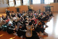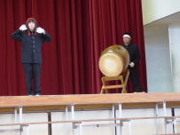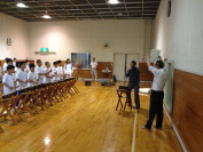 今日から総合学習の時間に1年生が「鰍沢ばやし」の練習を始めました。鰍沢ばやし保存会の会長さんをはじめ4名の講師の先生方をお迎えしてご指導いただきました。初めての生徒がほとんどだったので緊張気味でしたが,講師の先生の話をしっかり聞きながら練習をしていました。次第に慣れてきて,太鼓,笛,鉦の音が職員室まで響いてきました。教室では2,3年生が懐かしそうに聞いていたようです。伝統をしっかり継承できるように頑張りましょう。
