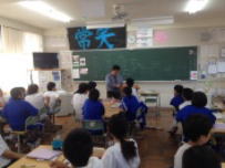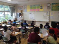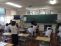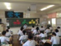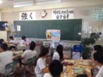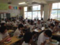 台風8号の接近で大雨や暴風が心配されましたが,幸い大きな被害もなく予定どおり1時間遅れで授業が開始できました。登校前に念のため職員が主な通学路を点検し,安全確認を行いました。朝から陽ざしが強く暑かったですが,元気に登校して来ました。給食の時間に3年生への給食指導がありました。夏野菜は水分を多く含んでいるので夏バテ防止に役立つそうです。