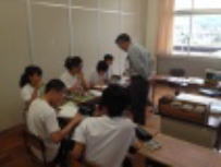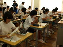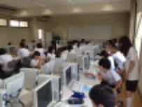 夏休みまであと1週間となりました。ワクワクした気持ちもあるかと思いますが,どのクラスも落ち着いた雰囲気で授業に臨んでいました。1年生の社会では郷土学習の取り組みについて説明を受けていました。地元富士川町の名産品を考えていました。すでに新しくできた道の駅に行ったという生徒が3分の1ほどいました。2年生の技術科ではパソコンを使って絵を描いたり,文字を動かしたりする方法を学んでいました。オリジナルの作品に熱中していました。3年生は英語でした。明日の実力テストを控えて,大切なポイントを復習していました。わからないところを積極的に質問している姿はさすが3年生です。