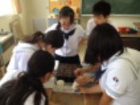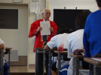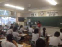 家庭科の授業では食物の勉強で栄養素の働きを勉強していました。カロリーが高いほど太りやすいと思って今したが,実は摂取したものが身体で作用するかが大切だということが分かりました。隣のクラスの社会科では歴史で黒船の時代について勉強していました。ただ教科書の内容を知識として得るのではなく,自分たちで考えながらその時代を学ぶという工夫した授業でした。今日は富士山の山開きの日です。給食には「富士山ゼリー」が出ました。カップを逆さにして紙皿の上に出すと,見事にMt.Fujiができあがりました。写真は校長先生のゼリーです。
