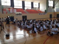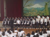 ここ数年恒例になっている市川高等学校の音楽部の生徒さんによる合唱教室が行われました。最初に市川高校音楽部の合唱を全校で聴きました。きれいなハーモニーとその迫力に鰍中生は驚きの表情をしながらも静かに聴き入っていました。後で「すごかった」,「感動した」という感想を多くの生徒が口にしていました。全体会の後,学年毎に会場を移動して合唱指導を受けました。高校生が上手に指導してくれたので,とても楽しく活動ができているようでした。来月の交流会(7/17)には更にレベルアップした合唱になるように期待しています。音楽部の皆さん,本日はどうもありがとうございました。