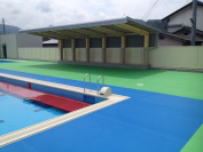 建設中だった念願の鰍沢小中学校プールが完成しました。今日は施設設備の説明会があり,体育主任と行って来ました。とても素晴らしいプールでした。温水シャワーが完備されていて快適でした。更衣室も生徒分のロッカーがあり,とても清潔な空間でした。7月2日に竣工式が行われ,正式にオープンします。楽しみにしていてください。