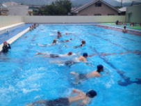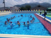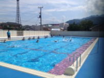 鰍沢小中学校のプールが完成し,本日,志村町長様,齊藤議長様をはじめ,議会議員様,教育委員様等多数のご来賓をお迎えして竣工式を行いました。全員で安全に使用できるように祈願しました。竣工式の後,秋山夏希さんによる模範泳法の披露がありました。引き続いて水泳教室で小学校の6年生が指導を受けました。中学校では来週から,本格的に体育の授業で使用することになりました。大変すばらしいプールを作っていただき,町関係者の皆様に心よりお礼申し上げます。
