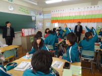 4校時に2年生では数学,5校時に1年生では保健体育の研究授業が行われました。数学では確率について,保健体育ではストレスへの対処について学習しました。生徒たちは話をしっかり聞いて,真剣に考えて,それぞれの意見を出していました。数学では実験を繰り返す中で確率について理解を深めていました。