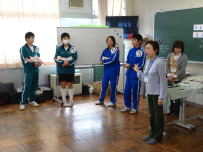 家庭訪問旬間です。放課後の部活動は担任以外の職員が分担して,体育館,グラウンド,テニスコートそして校舎内とそれぞれの場所を監督しています。体育館をのぞくと,3つの部が練習に励んでいました。どの部も3年生が下級生に声をかけたり,技術の指導をするなど積極的に動いていました。あいさつや練習に進んで取りかかるので,下級生が自然にそれにならう集団になっています。3年生のリーダーとしての自覚に感動しました。