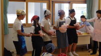 3年生が家庭科で調理実習をしました。グループごとにお好み焼き,ホットケーキ,それに牛乳からデザートを作っていました。調理や片付けの様子を見ていて,みんな手際よく作業をしていたので,「大人になったなぁ」としみじみ思いました。試食にと職員室にも届けてくれました。とてもおいしかったです。ごちそうさまでした。時間がある時に,ぜひ家族にも作ってあげてください。