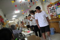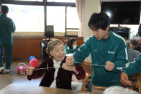 わかば支援学校ふじかわ分校との交流会が行われました。1年生35名がふじかわ分校を訪ねて,中等部の生徒さんたちとレクをしながら交流を深めました。最初は緊張していたからか,お互いに表情も硬かったですが,交流が進むにつれて打ち解けてきました。本校の生徒たちも分校で用意してくれたゲームに熱中していました。とても良い交流会ができました。ふじかわ分校の皆さん,ありがとうございました。