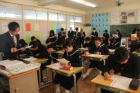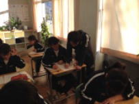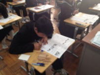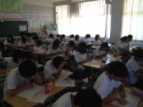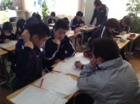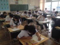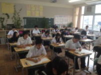 3校時,3年生の授業です。A組は国語の授業でした。作文を書く練習をしていました。「日本の文化を外国人の友だちに伝える」という内容がテーマでした。限りある字数の中で自分の考えをまとめていました。こういう授業を繰り返して表現力が身についてくるのだと思います。B組では社会の授業でした。公民で日本の平和主義について考える内容でした。難しいテーマですが,真剣に話を聞いていました。一人ひとりが自分の意見をしっかり持つことが大切であると感じました。3年生は明後日2日に教達検(校長会テスト)を控えています。いよいよ進路について真剣に考える時期になりました。頑張ってください。
