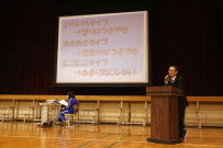 増穂商業高校のバレーボール部顧問の辻智之先生を講師にお迎えして,第2回目の「しなやかな心の育成」講演会を体育館で行いました。折れることのない粘り強さを備えた心,目的や目標をもって進学することなど強い心を持つことの大切さをお話ししていただきました。時々冗談も交えながら楽しい講演会になり,生徒たちの心に響くものがあったと思います。辻先生,本日はありがとうございました。