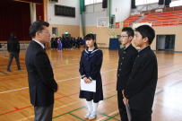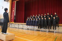 78日間の2学期が終了しました。鰍朋祭,思春期体験学習,福祉施設訪問,新人大会,道徳研究授業,合唱発表会等たくさんの行事がありました。生徒代表の話にもありましたが,行事を通して様々な経験をして学級,学年,学校が大きく成長してきたと思います。冬休み中は健康にはくれぐれも注意して,それぞれの課題をもって充実した生活を送ってください。