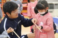 3年生が家庭科で保育についての学習を行っています。今日は第五保育所を訪ね,保育実習を行いました。教室で学んだことを活かして,実際に園児たちと接しながら貴重な体験をしました。一緒に遊んだり,ものを作ったりしながら楽しい実習ができました。園児たちのエネルギーに圧倒されて,ヘトヘトになった生徒たちもいたようです。第五保育所の皆様,本日はたいへんありがとうございました。