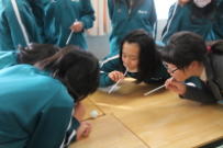6校時,2年生は家庭科を,1年生は技術科を学習していました。2年生は裁縫に取り組んでいました。1枚の布から,ブックカバーやランチマットなどそれぞれが選んだものを作成していました。どんなものができるか楽しみですね。1年生は木工に取り組んでいました。今日は木の材質の良さについて学んでいました。教師の話をしっかり聞き,質問にも積極的に応えていました。この後の作品作りに役立つでしょう。