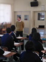 4月に修学旅行に出かける2年生。現在グループ見学のコース作りをしています。今日は旅行会社から添乗員さんをお迎えして,学習会を行いました。ガイドブックやインターネット等で調べ学習をしていますが,現地での添乗を何度も行っている方からの具体的なアドバイスや説明は大変参考になったようです。現地に行って有意義な学習ができるように今日の授業をしっかり覚えておきましょう。ありがとうございました。