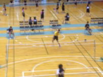 体育の時間に体力テストの1つとして,生徒の持久力を測るねらいでシャトルランを行いました。一定のペースで走りますが,途中からペースが上がり負荷がかかります。かなり厳しいものですが,生徒たちは自分の力にチャレンジしていました。事故のないように事前の健康チェックをし,本番では職員6名が立ち会って実施しました。1年生の担任も一緒に走り,声援を受けていました。