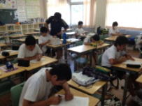 全校一斉に実力確認テストを実施しました。国社数英理の5教科でこれまで学習してきた内容と夏休みの取り組みの状況を確認することがねらいです。「テストできたかな?」という問いかけに,「バッチリでした」,「全然ダメ」,「微妙…」といった返事が返ってきました。今日のテストから自分の課題を見つけられるかがポイントです。次に活かせる復習をしましょう。