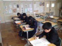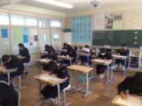 第2回目の教育課程到達度確認検査が行われました。1回目の検査と同様に3年生にとっては進路を選択するための重要な資料になるものです。前回の結果を受けて,新たな目標を立てて取り組みを続けてきたようです。放課後や休日に学習会が開かれ,積極的に参加している姿もありました。さて,自分の頑張りが結果になって出たでしょうか?