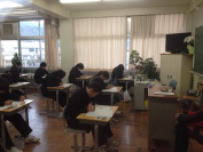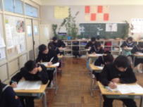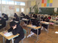 全校で実力確認テストを行いました。これまでに学習したことがどのくらい身についているかを確かめるねらいです。3年生は高校入試が近いので相当気合いが入っているようでした。また,1・2年生は冬休みの取り組みの成果を試す機会になりました。さて,結果はいかがだったでしょうか?