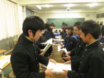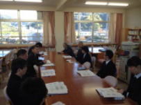 6校時に学友会の総会が行われました。体育館で行う予定でしたが,冷え込みが厳しかったので急遽,多目的室で行いました。今年の学友会活動の反省と冬休みの過ごし方が主な議題でした。各クラスから活発に意見が出て,中身の濃い話し合い活動ができたと思います。また,今総会は3年生を中心にした執行部にとっては最後の総会となりました。2年生が中心になる新執行部への引き継ぎも行われ,退任の挨拶の中で3年生が後輩たちに熱い想いを伝えました。
