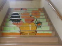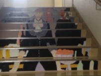 2年生が美術の時間に取り組んだ階段アートが完成しました。大きな一枚画をグループごとに描き,それをカットして校舎の階段に貼り付けました。1番下から少し身をかがめて見てみると見事な作品が現れます。昨年度も取り組み,来校された方々に大変好評でした。お便りでもお知らせいたしましたが,今日から19日までを「学校開放」期間としております。お気軽に生徒たちの活動の様子,学校の様子を見に来てください。