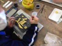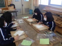 3年生の美術の授業では最後の作品作りに取り組んでいます。自分の好きな,あるいは思い入れのある漢字一文字を一枚の板に彫り上げています。それぞれが想いを込めてていねいに仕上げていて,かなりの力作ができあがりそうです。卒業式には展示されるようなので楽しみにしていてください。
