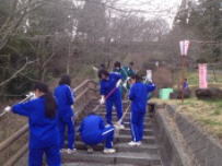 もうすぐ桜祭りが開催されます。1,2年生全員で大法師公園に続く階段を清掃しました。ふるさとの名所を誇りに思って,全員が本当に一生懸命に活動していました。枯れ葉やゴミでかなり汚れていましたが,約1時間半でかなりきれいになりました。きっとたくさんの人々が訪れて桜を楽しんでもらえると思います。桜祭り実行委員会の方々にも褒めていただきました。ありがとうございました。