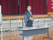 6校時に「しなやかな心の育成」講演会が行われました。「しなやかな心」とは,知・徳・体をバランス良く整え,折れることのないしなやかな粘り強さを備えた心の状態を言います(県教委)。本日は身延山岸之坊の諏訪様を講師に講演をしていただきました。「人としての生き方について」をテーマにお話しいただきました。難しい内容でしたが,生徒たちは真剣に聴いていました。