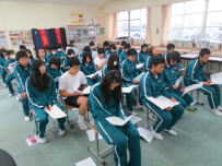 県総合教育センターより講師の先生をお迎えして,3年生を対象にストレスについて学習する授業を行いました。ストレスによる心の変化,ストレスのコントロール方法などをお話ししていただきました。受験を控えている3年生にとってはとても参考になる授業だったと思います。本番でもぜひ試してみましょう。