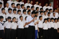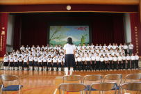 校内に大きな歌声が響いています。先日の市川高校の音楽部の皆様の指導を受けてから,取組への意気込みが変わってきたと思います。今日は音楽の時間に2年生がパート別に練習をしていました。CDの伴奏に合わせて何度も繰り返していました。いいものを自分たちで創り出そうという意識が出てきています。7月17日の発表会までには素晴らしいものが仕上がっていると思います。ご期待ください。