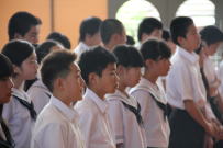 今日から2学期が始まりました。日に焼けて明るい表情の生徒たちが元気に登校してきました。「夏休み終わったね?」と声をかけると,「あーあ」っとため息をつく生徒もいました。1校時には体育館で始業式を行いました。校長先生のお話の後,各学年の代表が2学期に向けての決意を発表しました。1学期の反省をふまえてどう行動していくかを述べました。発表者も聴く側も大変立派な態度で,夏休みと2学期開始の切り替えができました。