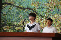 1学期の終業式が行われました。校長先生から1学期を振り返って頑張ったことを褒めてもらいました。また,全校生徒に「変わる」という言葉が示され,何か自分の中で成長するものを休み中に見つけてほしいという話がありました。その後,各学年の代表が1学期を振り返り,2学期へ向けての抱負を述べました。各代表とも自分たちの活動をしっかり分析し,次に何をすべきかが解っていました。全員,ノー原稿でしっかり発表しました。明日から34日間の夏休みに入ります。怪我や病気がなく,楽しく充実した休みが送れるようにしてください。ひとまわり成長した姿を8月26日には期待しています。
