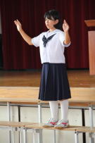 鰍朋祭に向けてフォークダンスの練習を全校で行いました。学友会の本部役員がしっかり模範を示した後,学年ごとに輪になって練習を行いました。恥ずかしそうに踊る様子はとても微笑ましいものでした。こうした本番までの取り組みの積み重ねが大切です。絆を深めながら最高の舞台へ向けて羽ばたいて欲しいです。