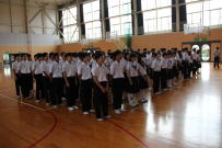 9月1日の防災の日を前に,全校で地震を想定した避難訓練を行いました。事前に各学級で防災対策について生徒と話し合い,災害に対する意識を高めました。地震発生の警報が出た後は,担任の指示に従って静かに速やか避難することができました。全体で安全避難を確認したあと,地区別に集合して一斉下校の際の確認をしました。いざというときに備えて今後も訓練を続けていきたいと思います。