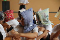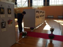 1・2校時に全校で体育部門のリハーサルを行いました。入退場の仕方,競技のルール等を確認しながら進めました。部門の生徒が積極的に行動して指示を出していたので,全校がスムーズに動くことができました。自分たちの手で鰍朋祭を創っていこうとする姿勢が立派でした。体育館のロビーでは作品展示の準備が進んでいました。当日を楽しみにしていてください。