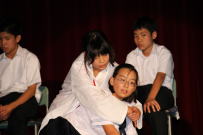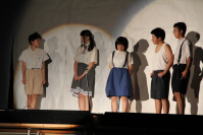 午後から増穂中学校と合同で文化教室を行いました。今年は劇団『仲間』の皆様による「風の中のマリア」を観劇しました。オオスズメバチの働き蜂のマリアが自分の生き方を見つめ直すというストーリーで,「生きる」とは一体何なのか…?という問いかけをしたものでした。生徒たちはそれぞれ自分を振り返って何かを感じたかと思います。また,鰍朋祭で予定されている学年劇にこれから取り組むにあたって参考になったのではないでしょうか。