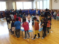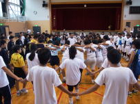 昨年に引き続き,今年も鰍沢小学校の全校生徒と合同で交流レクレーションを行いました。イス取り,手つなぎ鬼,指示ゲーム等の楽しい活動を企画から運営まで学友会がしっかり行ってくれました。小学生もたいへん楽しそうに体育館を駆け回っていました。今後も交流する機会をたくさんもって連携を深め,仲の良い関係を続けていきたいです。