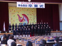 ご来賓と保護者の皆様が見守ってくださる中,第68回の卒業式が挙行されました。胸を張って堂々と入場してきた卒業生の姿に大きな成長を感じました。卒業生の呼びかけと合唱はたいへん感動的でした。また,在校生の式に臨む態度も大変立派で,鰍沢中を引っ張っていこうとする決意を感じました。41名の卒業生は,今日それぞれの思いを胸に未来に向かって羽ばたいていきました。ありがとうございました。