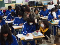 午後から授業参観とPTAの学年総会を行いました。日曜日に設定をしたのでたくさんの保護者の皆様に参観していただきました。2年生は修学旅行の調べ学習の成果を発表し,1年生ではテストでできないところを保護者とともに考えていました。また,今年度は小学5,6年生を対象に体験授業を行い,中学校の授業や生活をちょっとだけですが知ってもらえたと思います。一年間のまとめの会として,生徒たちの成長の様子を見ていただけたと思います。本日はどうもありがとうございました。