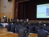 来年度入学予定の6年生とその保護者の皆様にお集まりいただき,鰍沢中学校の一日入学を行いました。学校の生活の様子や決まりについて説明をした後,1年生が学校生活について先輩としての話をしました。ちょうど1年前には6年生として説明を聞く側でしたが,1年間で大きく成長しました。合唱も素晴らしく,6年生も感動していたようでした。4月からの生活の不安が解消されたでしょうか?