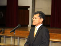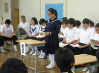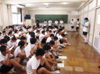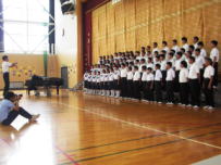 8日(水)11日(土)に行われる地区総合体育大会の選手壮行会が行われました。学友会(生徒会)が中心となって会を進行しました。特に3年生の選手の皆さんは最後の大会だけあって少し緊張した面持ちでした。地区総体での選手の皆さんの健闘を心から祈っています。