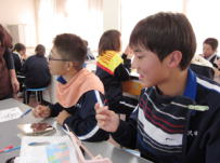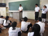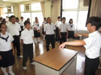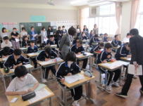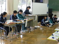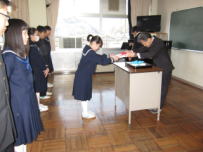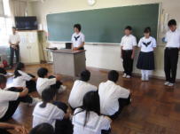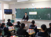 | 小中連携活動のひとつとして、新入生の体験授業を本校で行いました。鰍沢小学校の皆さんが参加し、数学と英語の授業を受けました。数学では多面体の不思議さに驚き、英語では単語を覚える楽しさを実感できたことでしょう。一生懸命に学んだ6年生に感謝です。付き添いの校長先生、教頭先生、担任の先生、6年生の皆さん、ありがとうございました。 | ![]() |
