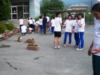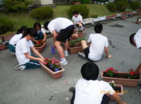 学友会総会で話し合われた活動の一つ、委員会活動が始まりました。環境美化委員会がさっそく鉢花を植えてくれました。鰍沢中学校を花いっぱいにしてくれました。これからは水やりなどの手入れがあります。大切に育てて下さい。また、ゴーヤの緑のカーテンも始まりました。今後が楽しみです。