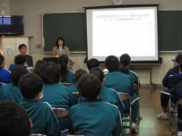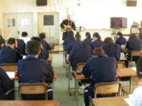1年生が、峡南林務環境事務所より2名の講師をお招きして「廃棄物適正処理学習会」を行いました。町内の不法投棄の現状を知ったり、廃棄物をどのように分別したらよいかという内容を学びました。不法投棄物の写真には、生徒からため息が漏れていました。お忙しい中おいで下さった講師の皆さん、ありがとうございました。