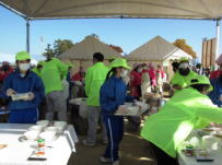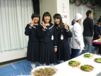 快晴の青空の下甲州富士川まつりが行われました。まつりに合わせ行われる町駅伝大会に鰍沢中から男子1チーム、女子2チームの計3チームが参加しました。どの選手も1秒でも縮めてタスキをつなごうと走りました。女子Aチームは惜しくも4位でした。来年度の健闘を期待しています。また、まつりの目玉の一つ「みみ」の調理・販売に、生徒がボランティアで協力しました。休みなく、盛りつけた「みみ」を次々と運んでいました。お疲れ様でした。