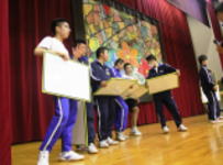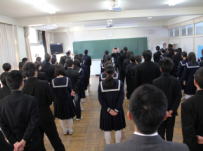 先日の学友会新役員選挙で来年度の会長・副会長が選ばれて最初の総会となります。4月からの活動のまとめが話し合われました。学友会役員の皆さんは、大変だけれどやりがいのある役割を立派に果たしてくれました。ありがとうございました。また、新役員は任命を校長先生から受けました。新会長を始めとした皆さんがどのような舵取りで鰍沢中を導いていくのか大いに楽しみにしています。そして、みんなで応援していきます。総会の後には恒例のレクが体育館で行われました。絵の伝達ゲームやクイズなどで、全校一同大いに楽しみました。