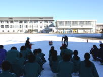 始業式の後、火災想定の避難訓練を行いました。先日の雪が残る中でしたが、しっかりと避難を行いました。避難後の集会の中では消火器の使い方を学習しました。校長先生がよくおっしゃっている「災害は忘れた頃にやってくる」の言葉を胸に見本を見せてくれた先生を全員が見つめていました。