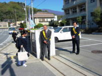 青少年育成町民会議の主催で「朝のあいさつ運動が行われました。あいさつはしつけの基本です。川手貞良 町教育長やメンバーの皆さんもにこやかにあいさつをされていました。鰍沢中学校の生徒もしっかりあいさつができます。